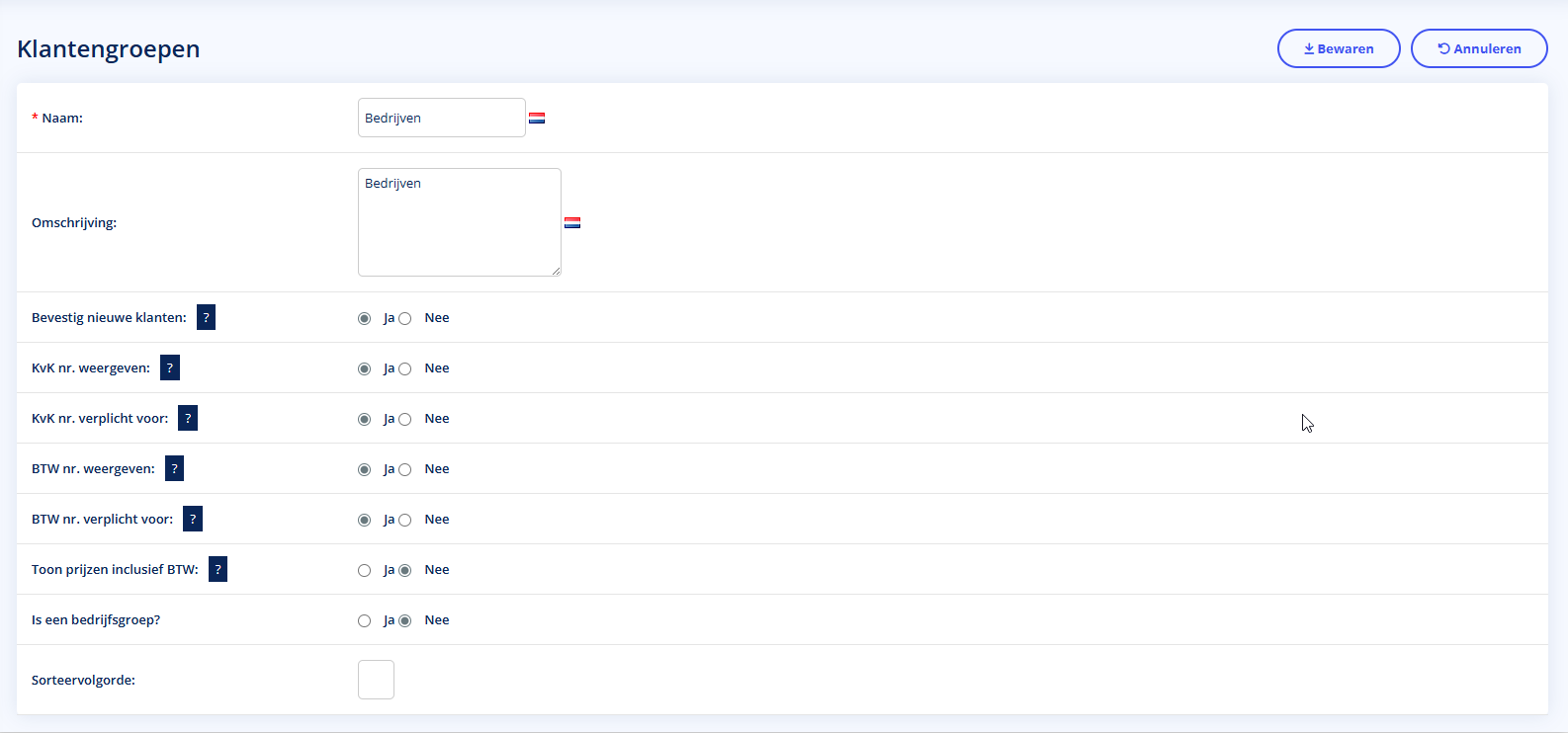 Stap 1: klantengroep “Bedrijven” toevoegen