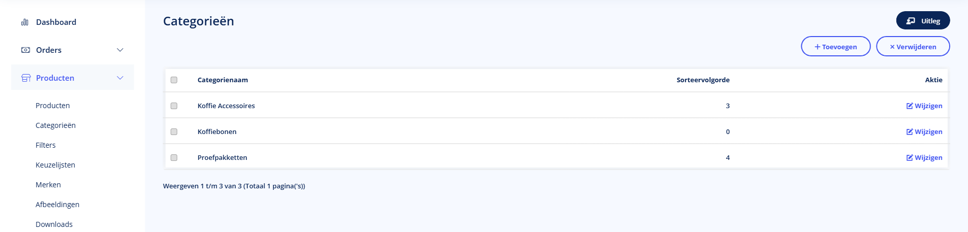 Met categorieën organiseer je je producten in overzichtelijke groepen. Klanten kunnen zo gemakkelijk door je webshop navigeren. Ga naar Producten → Categorieën.